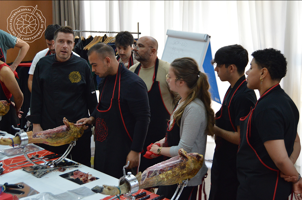Segundo día en Madrid ¡Qué gusto ver tantas ganas de aprender, de cortar bien y de disfrutar del jamón como se merece!