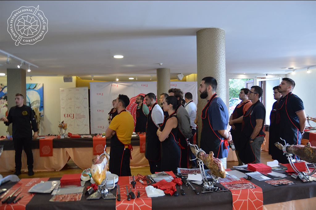 Ayer se realizó una jornada intensa y muy práctica en la que cada alumno trabajó su propio jamón, aprenciendo la técnica de corte y todos los secretos para sacar el máximo partido.